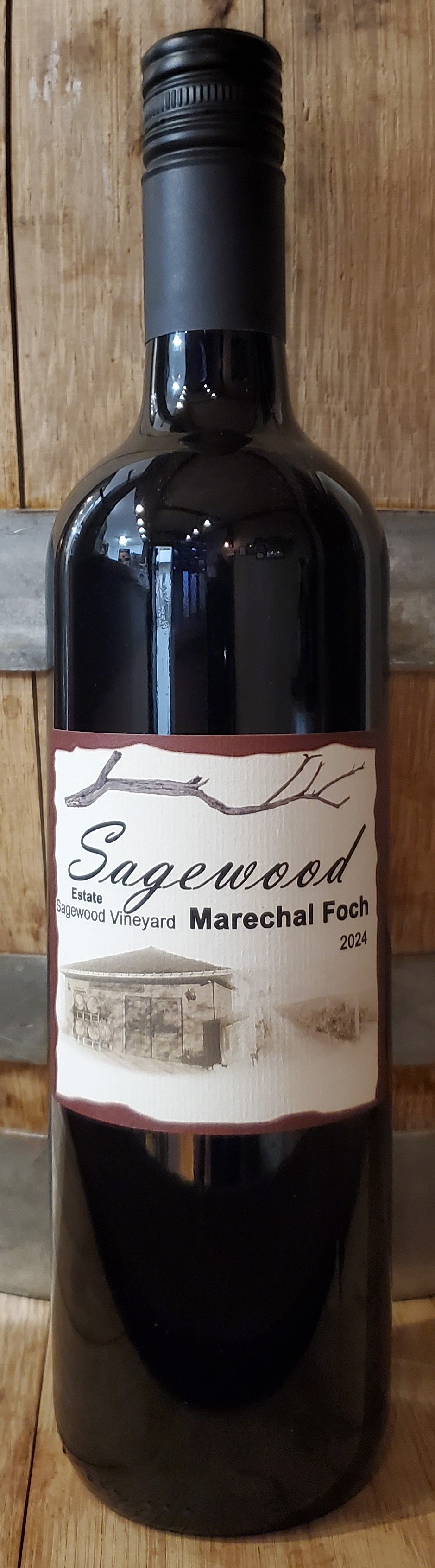 Marechal Foch 2024:   Rich black cherry colour.  Bouquet of currant and sweet blackberries.  Full bodied with complex flavours of currant, cherry and all spice.  Pairs with red meats, hearty winter stew.